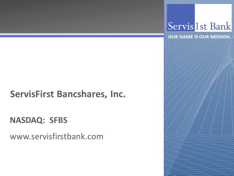 OUR NAME IS OUR MISSION. NASDAQ : SFBS www.servisfirstbank.com ServisFirst Bancshares, Inc.