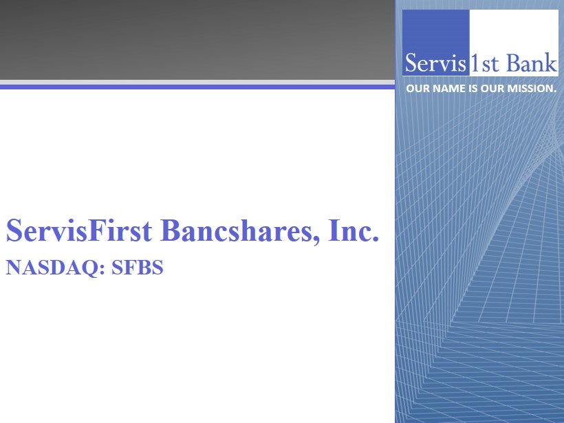 OUR NAME IS OUR MISSION. ServisFirst Bancshares, Inc. NASDAQ: SFBS