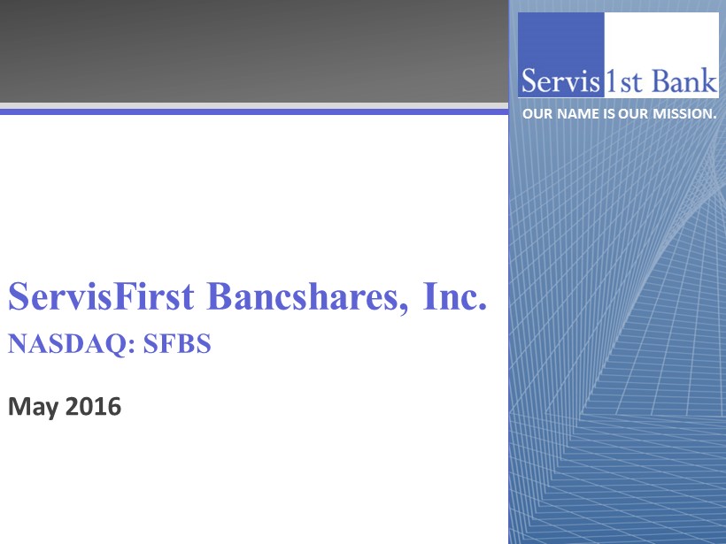 OUR NAME IS OUR MISSION. ServisFirst Bancshares, Inc. NASDAQ: SFBS May 2016