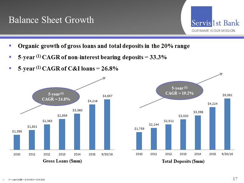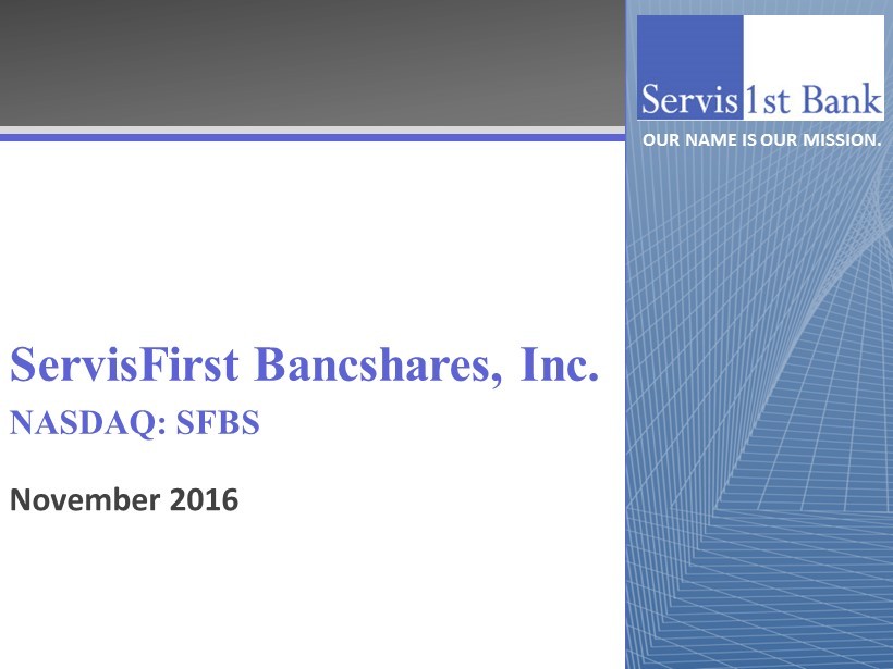 OUR NAME IS OUR MISSION. ServisFirst Bancshares, Inc. NASDAQ: SFBS November 2016