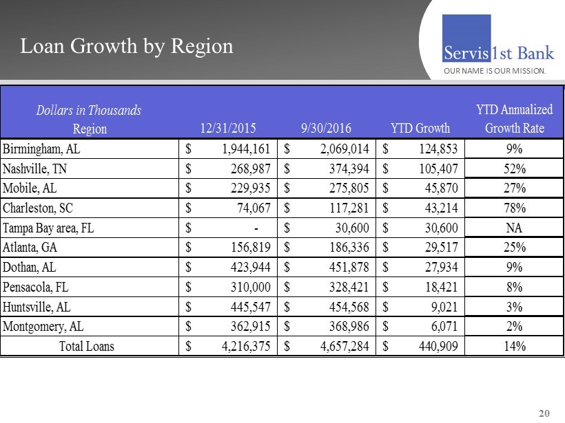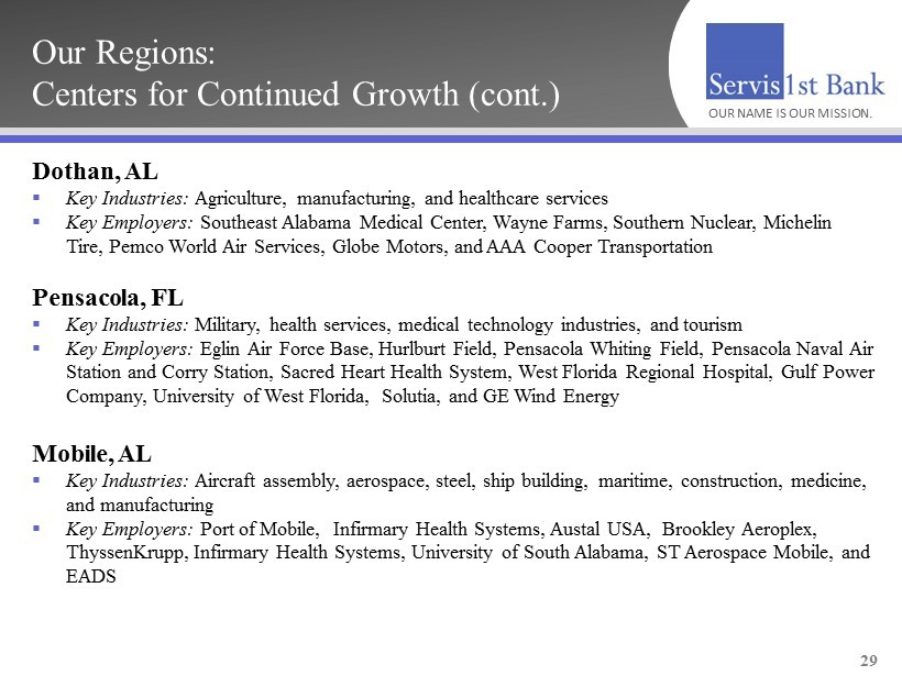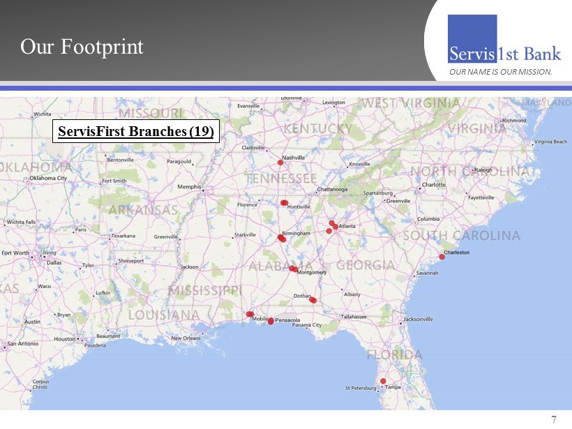 Our Footprint OUR NAME IS OUR MISSION. 7 ServisFirst Branches (19)
