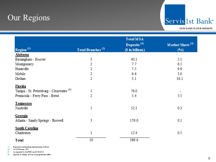 Our Footprint 7 This image cannot currently be displayed. ServisFirst Branches (19)
