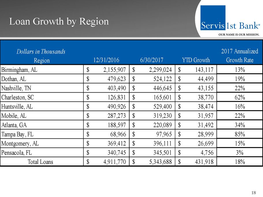 ServisFirst Bancshares, Inc. NASDAQ: SFBS August 2017