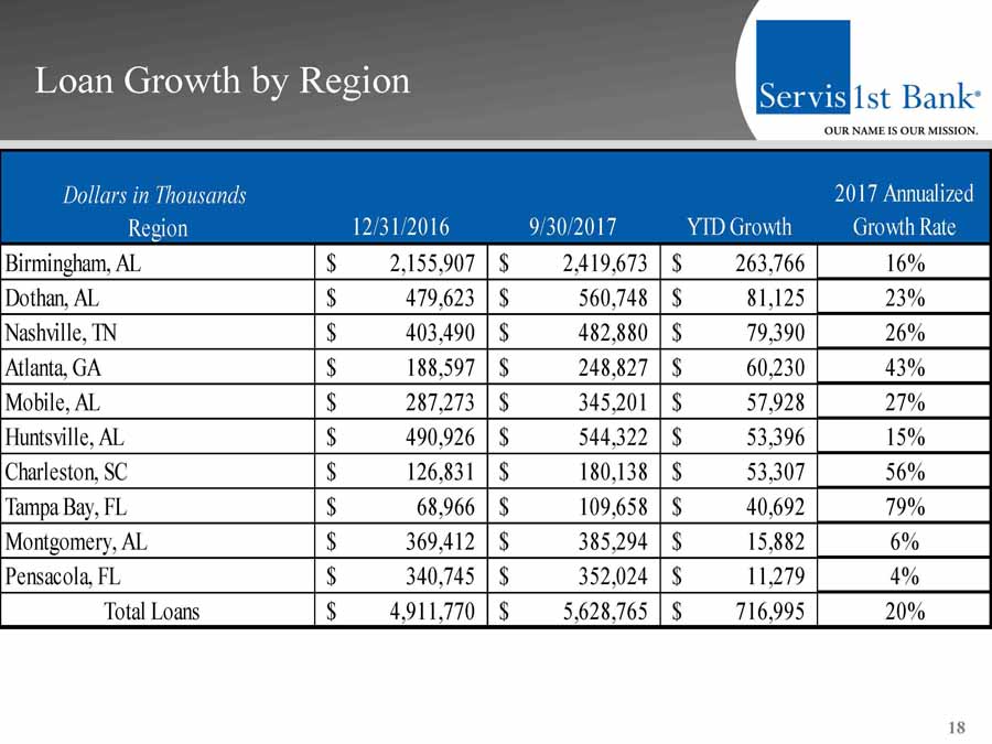 ServisFirst Bancshares, Inc. NASDAQ: SFBS November 2017