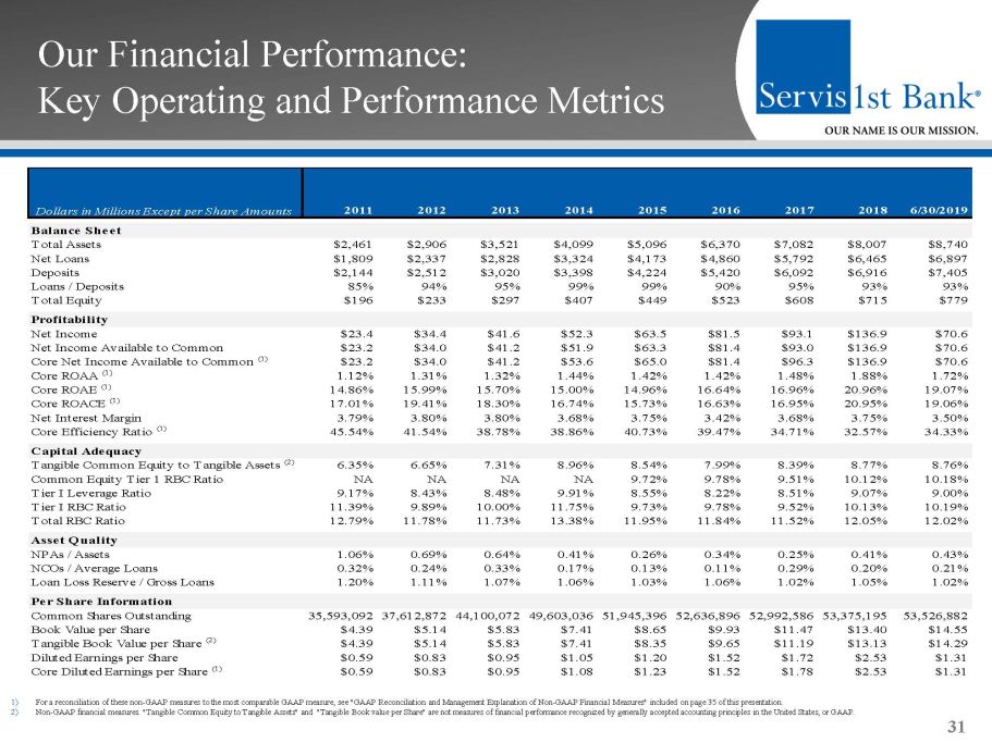 | 99.1 | ServisFirst Bancshares Investor Presentation | |