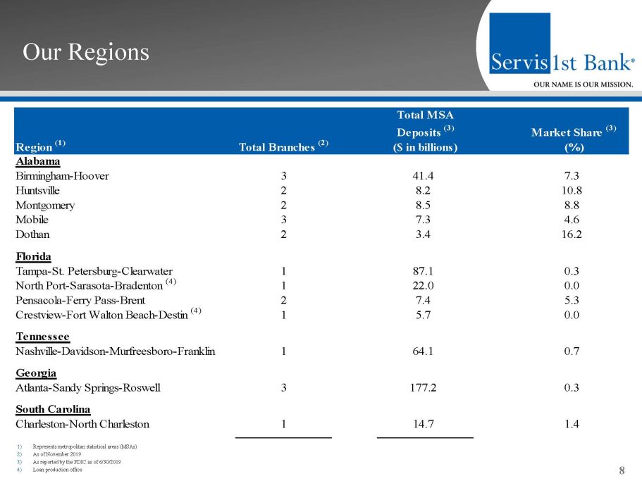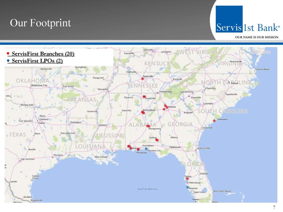 Our Footprint 7 ServisFirst Branches (20) ServisFirst LPOs (2)