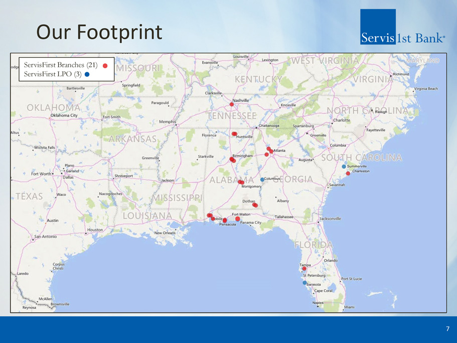 Our Footprint 7 ServisFirst Branches (21) ServisFirst LPO (3)