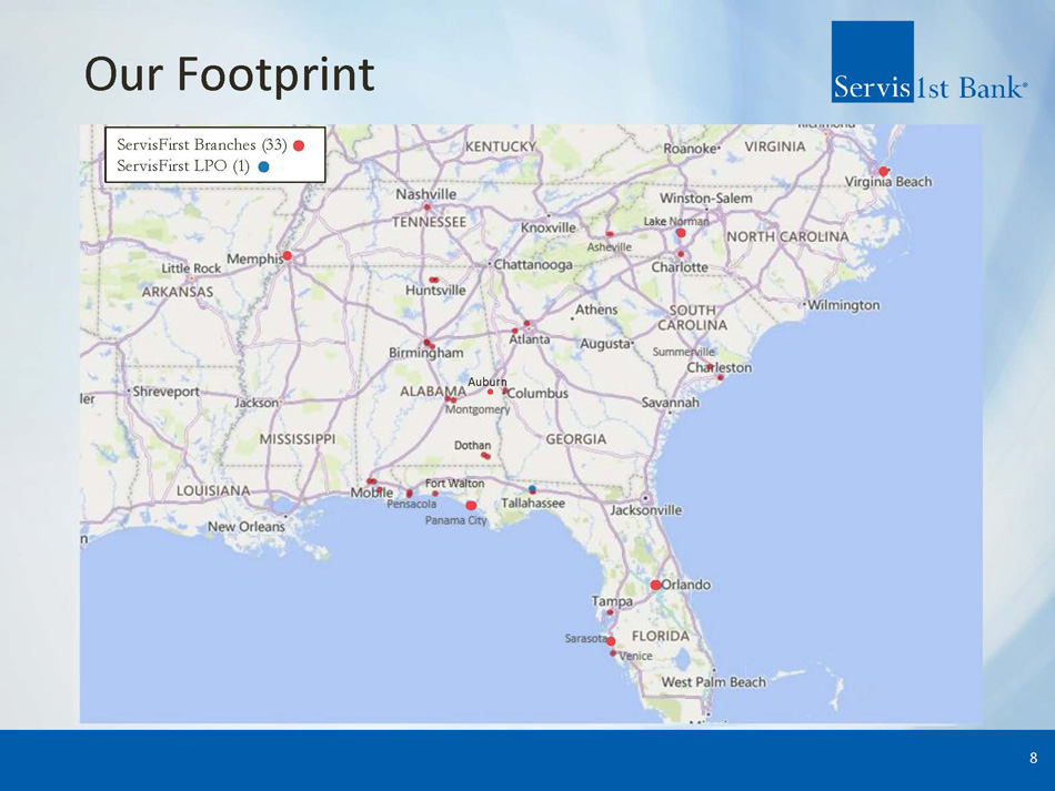 Our Footprint 8 ServisFirst Branches (3 3 ) ServisFirst LPO (1) Auburn